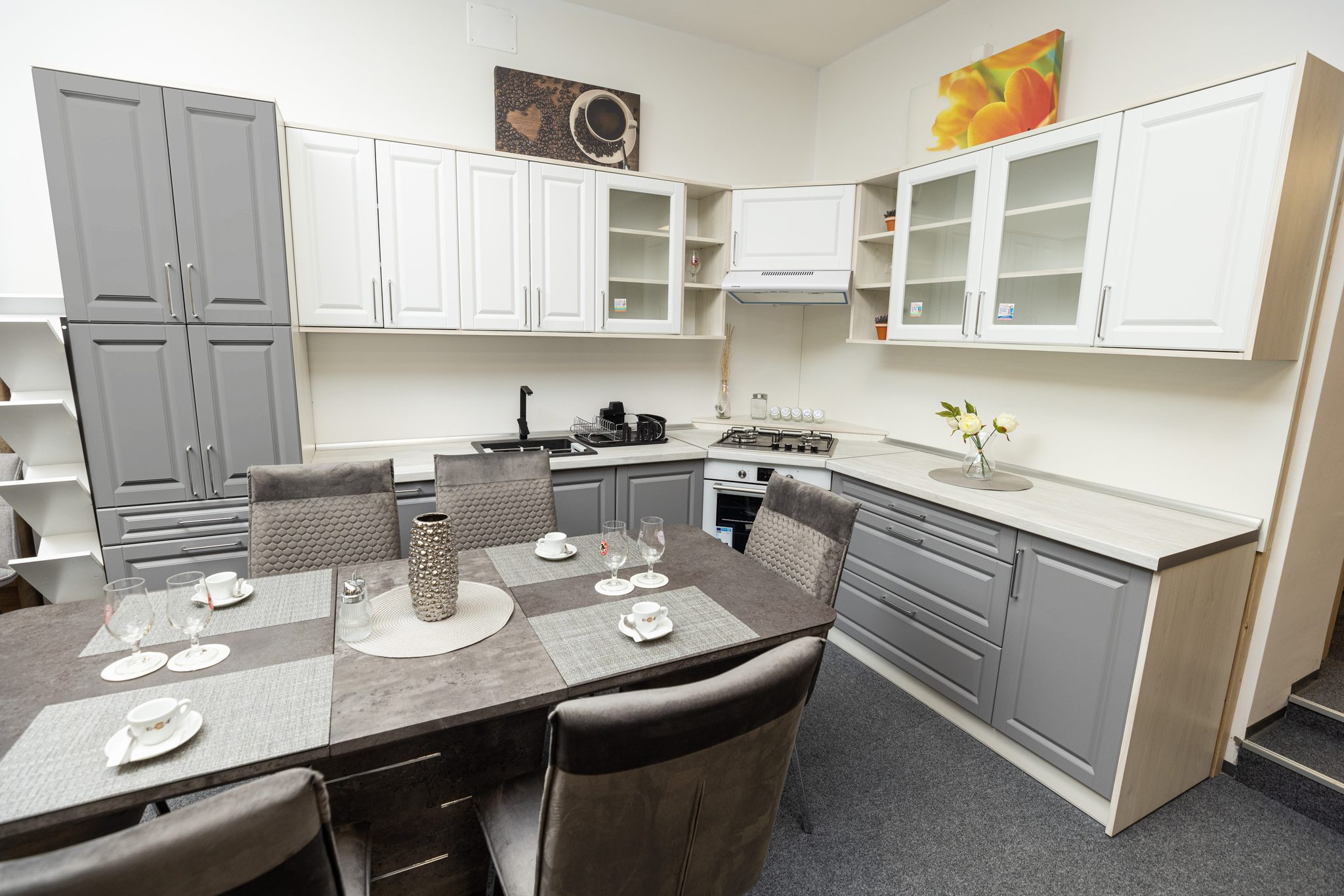 Ragyogó ajtófrontok és prémium korpusz anyagok megannyi kombinációjában elérhető, így méltán népszerű konyhánk. A praktikumról és kényelemről olyan felszerelések gondoskodnak, mint a gránit mosogatótálca vagy teljes kihúzású fiókok, amelyek megkönnyítik, élvezetessé teszi a mindennapi konyhai feladatokat.